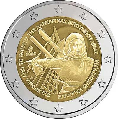 - Fior di conio UNC - 2 euro Grecia 2025 - Morte di Laskarina Bouboulina