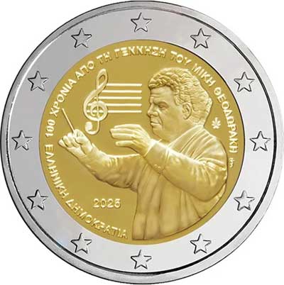 - Fior di conio UNC - 2 euro Grecia 2025 - Nascita di Mikis Theodorakis