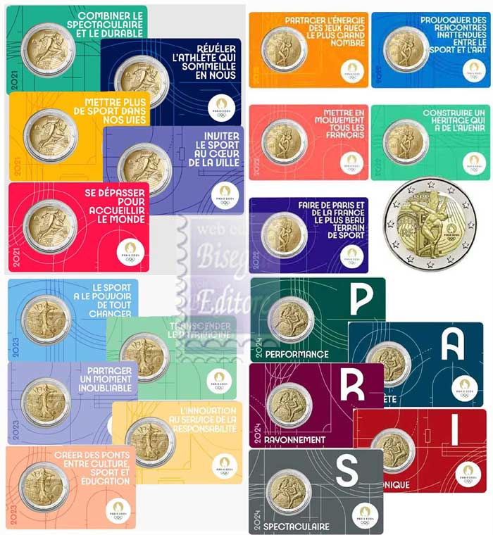 Giro completo di tutte le Coincard emesse dalla zecca Monnaie de Paris dal 2021 al 2024 ...